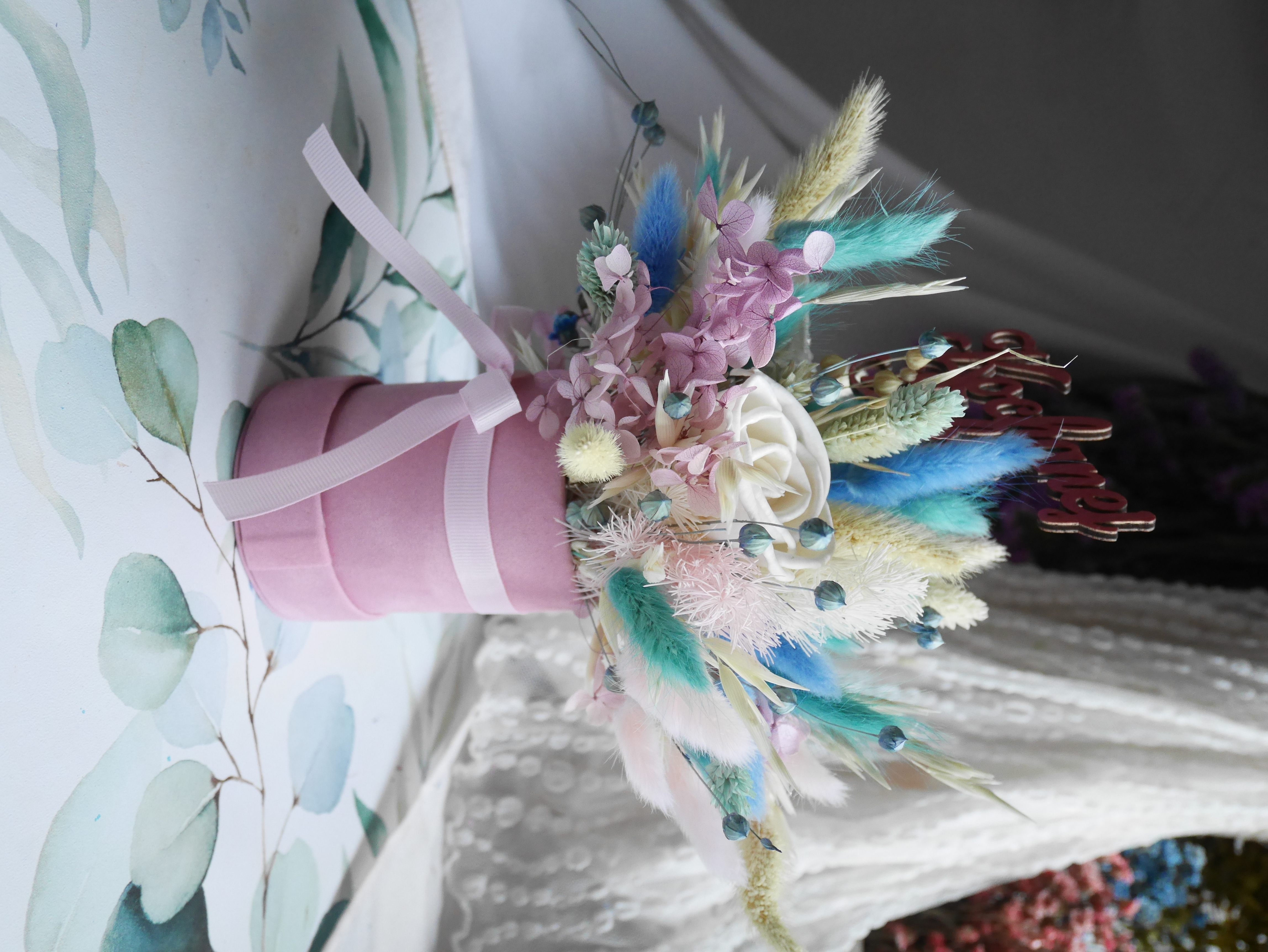 Kwiaty suszone i stabilizowane zachowują swój naturalny wygląd przez długi czas, nie wymagają podlewania ani szczególnej pielęgnacji. To trwała pamiątka, która będzie piękną ozdobą wnętrza przez wiele miesięcy.