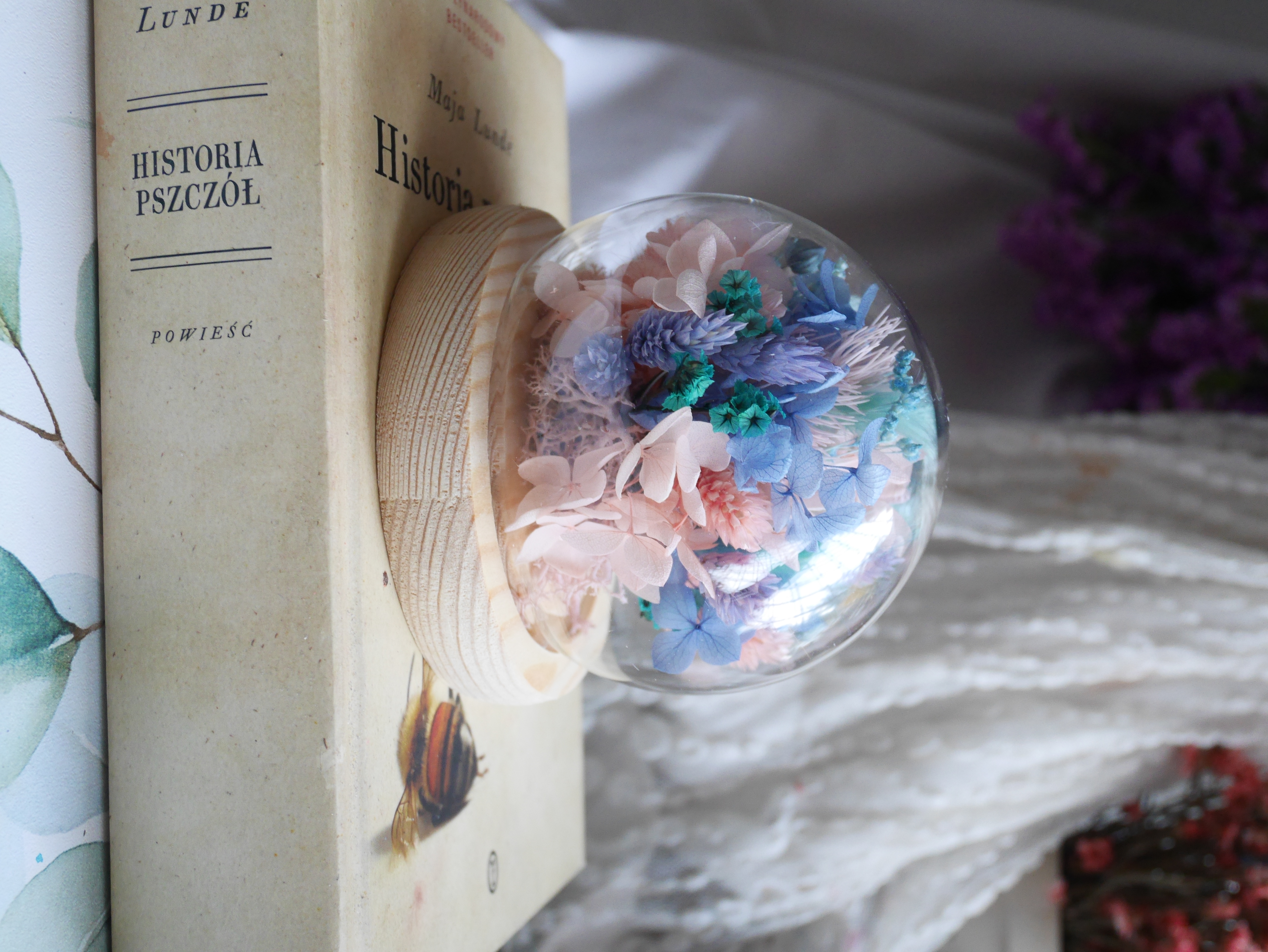 szklana kula z kompozycją suszonych kwiatów