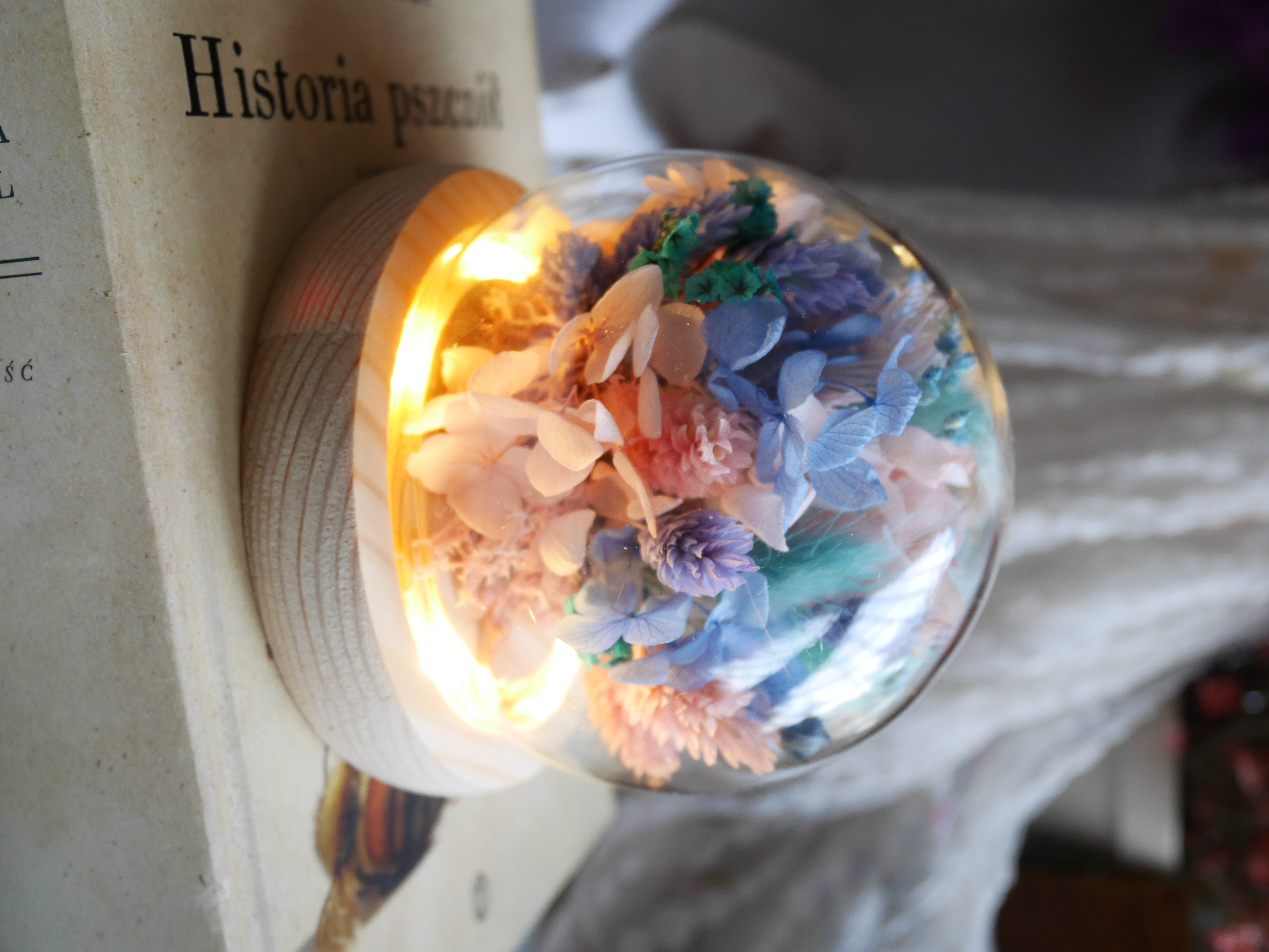 Dekoracyjna kula z suszonymi kwiatami LED