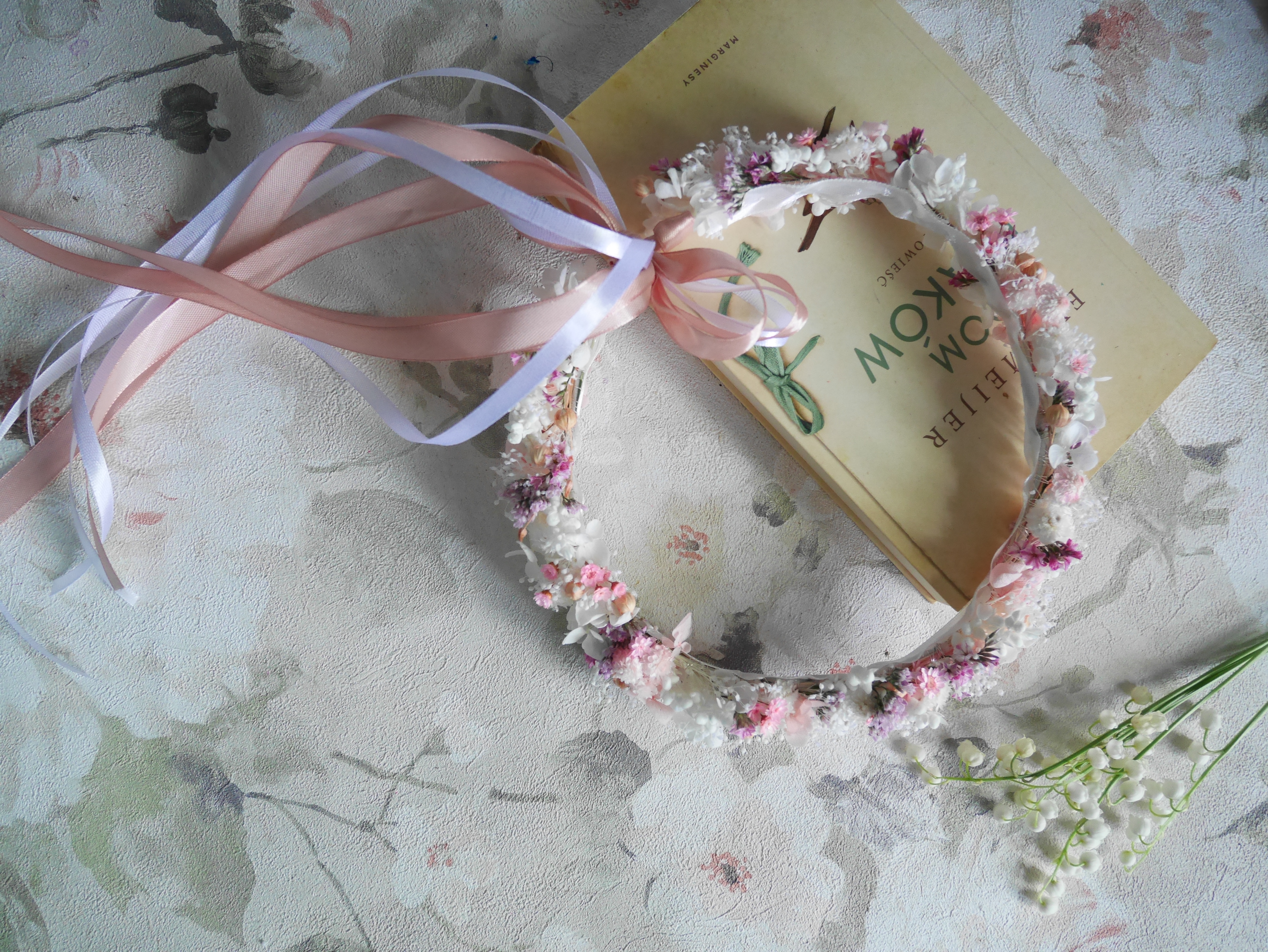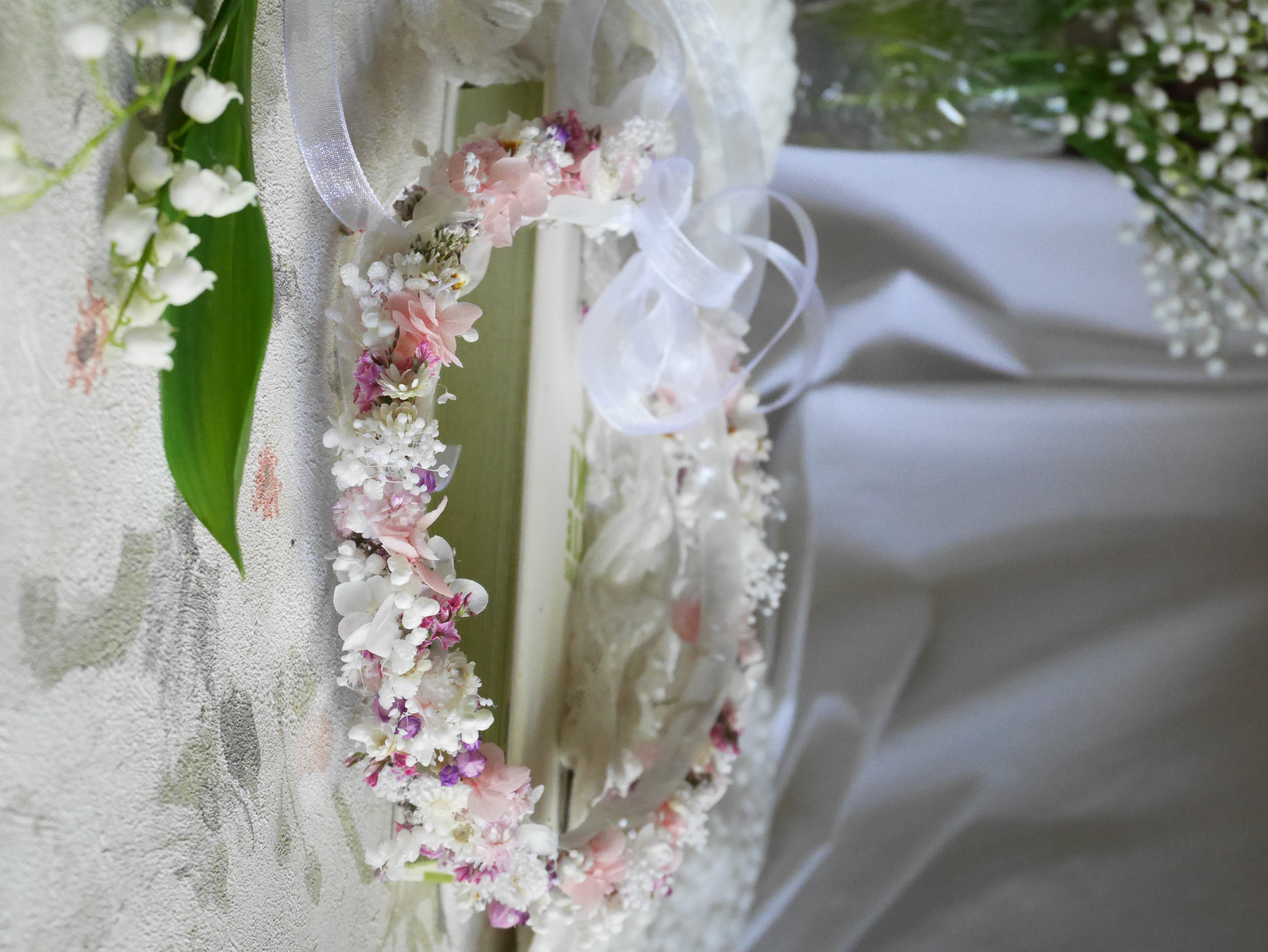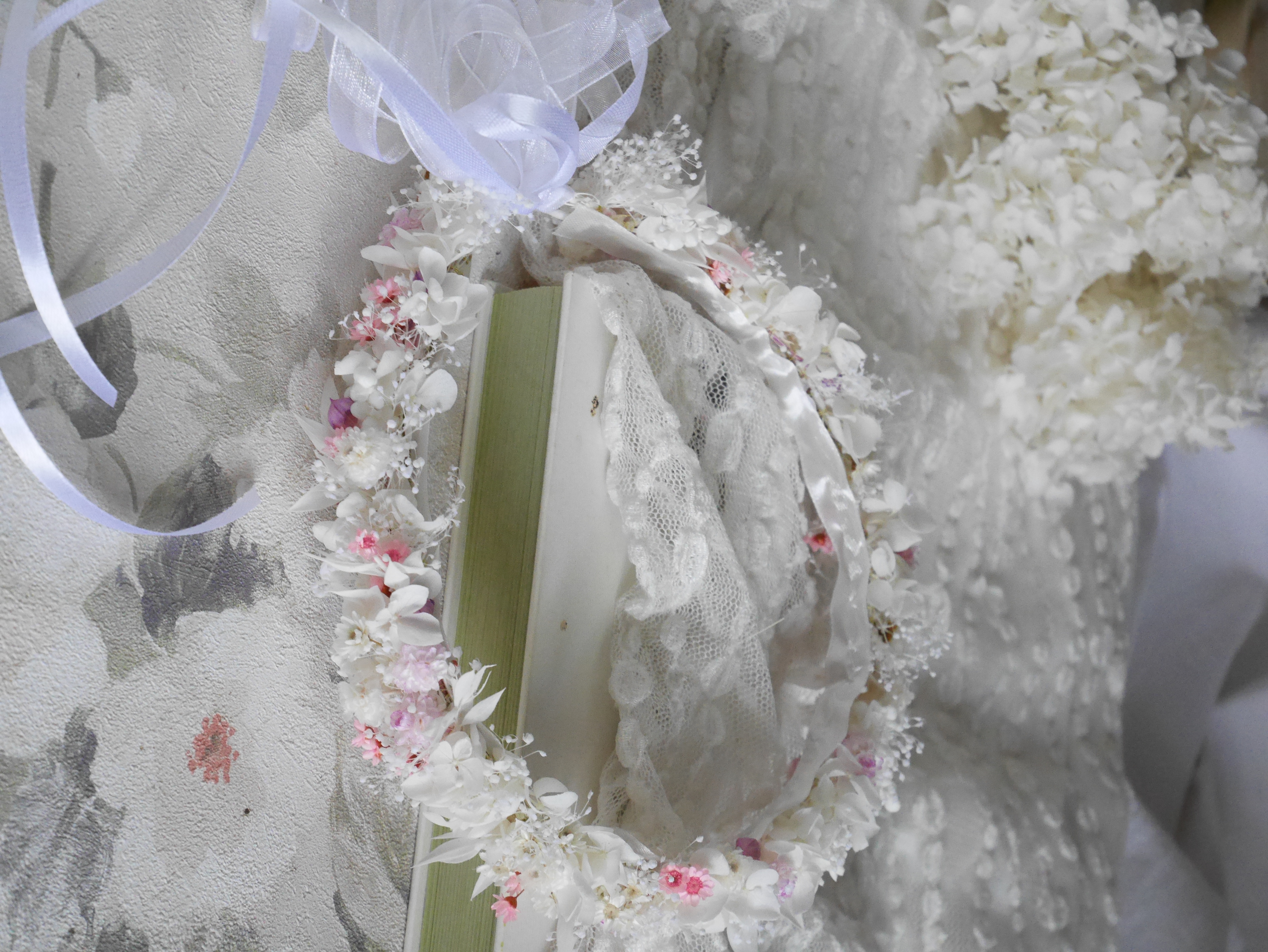 Delikatny wianek komunijny wykonany z suszonych i stabilizowanych roślin, tworzony indywidualnie na zamówienie. Każda kompozycja powstaje ręcznie z najwyższą starannością, z dbałością o detale i harmonijne zestawienie kolorów. Naturalne materiały nadają wiankowi lekkości i ponadczasowej elegancji, a dzięki suszeniu i stabilizacji zachowuje on swój piękny wygląd na długo. To wyjątkowa, niepowtarzalna ozdoba.